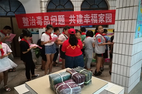 活动通过禁毒展板宣传、悬挂横幅、发放宣传资料、禁毒知识讲座等形式展开,营造了浓厚的禁毒氛围。在禁毒宣传展示板前,来自县禁毒大队的警员以自己的专业知识和丰富的办案经验,结合展板上典型案例,向学生们介绍了毒品的种类及危害,讲解在校学生如何保护自身合法权益的相关知识,禁毒志愿者向中小学生发放了宣传资料并向同学们作了简要讲解。