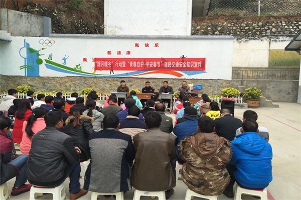 活动在莲花滩乡中心小学举行,活动中县交警大队桥头中队中队长许家停同志就道路安全、驾驶安全和安全自护等方面向前来参加活动的学生及学生家长进行宣传讲解,旨在引导青少年在寒假期间注意安全,掌握自我保护的常识和技能,增强青少年自我保护能力,过一个安全、愉快、文明、祥和的春节,为青少年健康成长保驾护航。