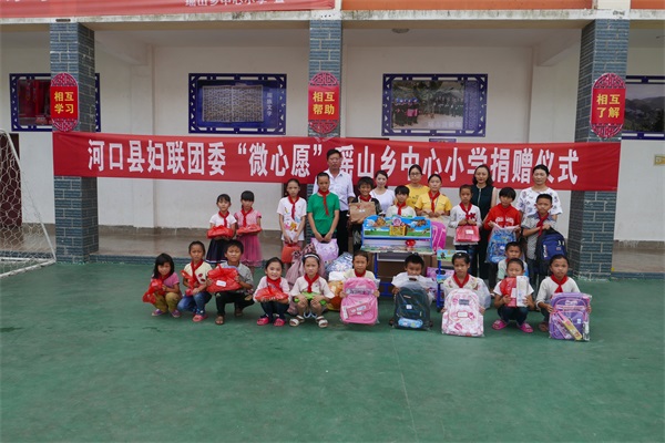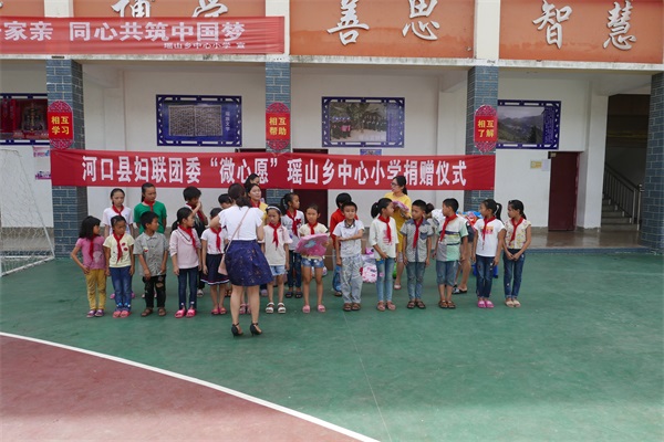 根据河口县妇女联合会、共青团河口县委联合举办的“凝聚爱•共圆梦”微心愿征集活动的要求,瑶山乡积极开展、认真落实,在瑶山中心小学、牛塘小学、上海华安希望小学、八角小学贫困学生中共征集了116个“微心愿”,并于7月6日下午,在瑶山乡中心校举行了捐赠仪式。
