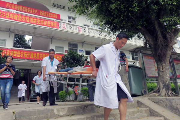 本次演练,有来自蚂蝗堡农场机关领导,南溪镇领导,南溪镇中心校领导,以及蚂蝗堡农场各队支部书记和队长50余人参加了观摩活动。在这次演练中,感谢河口县地震局,蚂蝗堡农场,蚂蝗堡卫生院给予了我们最大的指导和帮助,使得蚂蝗堡小学自然灾害应急疏散演练取得圆满成功!
