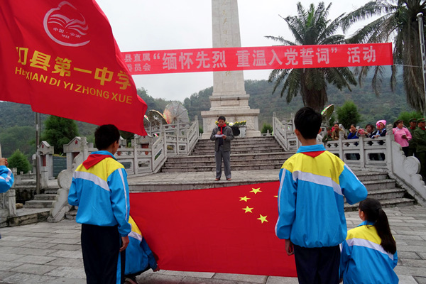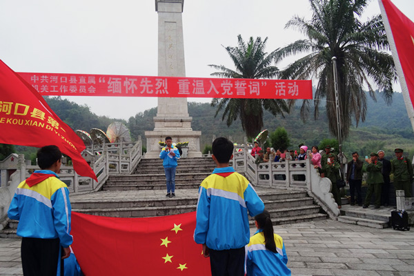 为了更好地对学生进行革命传统教育,教育学生缅怀革命先烈,发扬革命传统,河口一中于2017年4月1日上午,组织七年级全体师生到河口县水头革命烈士陵园开展以“缅怀革命先烈,重温入团誓词”为主题的祭扫活动。本次祭扫活动主要通过奏国歌、师生代表向革命烈士敬献花圈、默哀缅怀革命烈士、团员代表发言、重温入团誓词等环节开展。活动结束后,在各班老师的组织下同学们有序的瞻仰了烈士陵园,同学们还为烈士们献上了自己精心制作的小白花。
