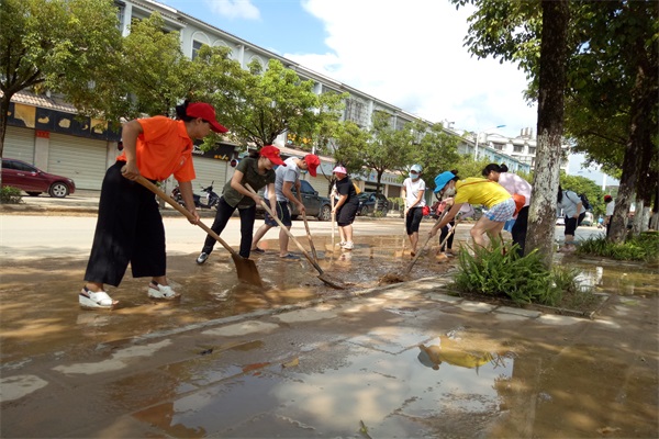 共青团河口县委组织青年志愿开展暴雨后大扫除
