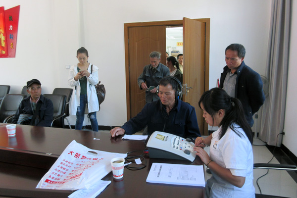 首先,医务人员给听力有障碍的群众们做了防聋治聋知识宣传,告诉他们要提高爱耳,护耳意识,以减少听力残疾的发生。   其次,医务人员现场免费进行听力检查及助听后评估,耳聋基因检测作为听力障碍诊断的一个重要手段,它使耳聋的诊断达到了分子生物学的水平,此次听力检查工作,全乡能够办理助听器的有20人。